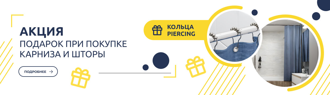 Мы объединяем лучшее! При покупке любого карниза и шторы для ванны LEN/ESSEN, вы получаете комплект колец Piercing Chrome в подарок!